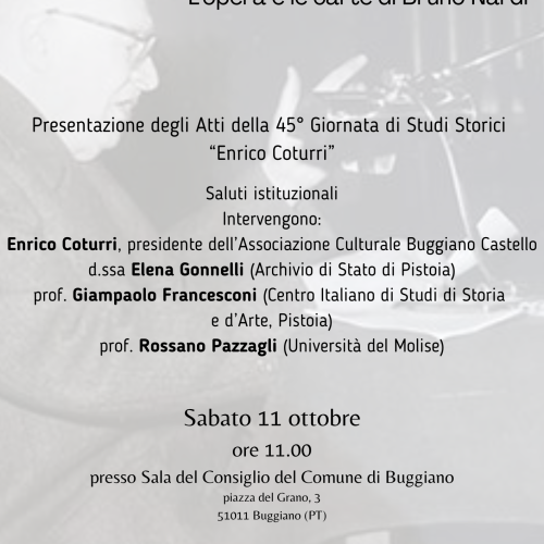Sabato 11 ottobre Presentazione Atti 45° Giornata di Studi Storici su Bruno Nardi